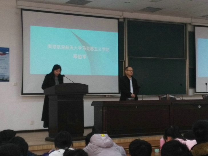 12月26日,我校党的十九大精神宣讲团成员、马克思主义学院教授邓伯军应邀到后入女友 作题为《新时代、新使命、新思想、新征程——十九大的主要精神和历史贡献》主题报告,学院全体师生党员,预备党员、入党积极分子、党外人士代表、师生代表400余人参加学习。院党委书记冯绍红主持会议。