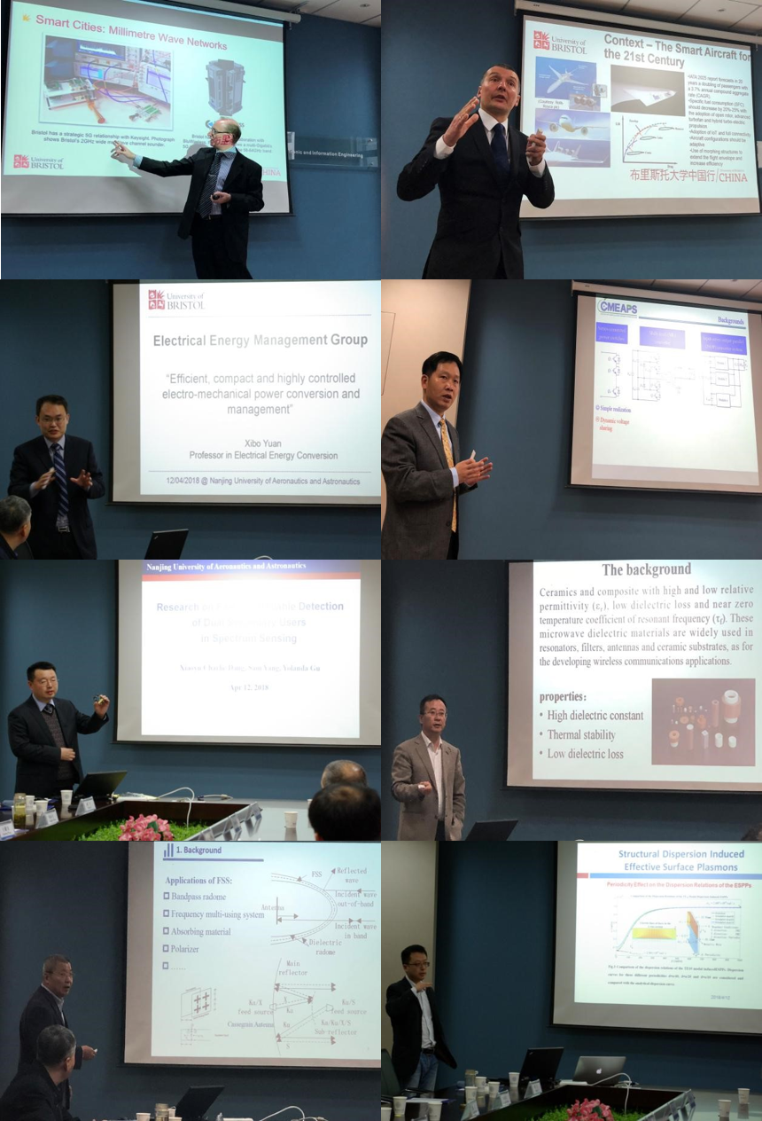 2018年4月12日,南航与英国Bristol大学电气、电子工程国际学术研讨会在后入女友 顺利召开。此次研讨会由国交处、后入女友 主办,自动化学院、材料学院、国教院、南京多媒体技术协会协办。会议参会代表17名,其中,有来自英国Bristol大学的理学院院长及有机化学专家Tim Gallagher教授、材料化学专家Charl Faul教授、数学统计学专家Feng Yu教授和工学院院长及通信系统与网络主任Andrew Nix教授、复合材料研究机构主任Fabrizio Scarpa教授、电气能源管理研究组Xibo Yuan教授以及国际合作交流管理负责人Michael Benson先生。同时,还有来自南航的电子信息学院赵永久副院长、曹群生教授、党小宇教授、李茁副教授、黎宁副教授,自动化学院阮新波副院长、材料学院傅仁利教授、理学院王正盛副院长、黄建平副教授和赵越老师。