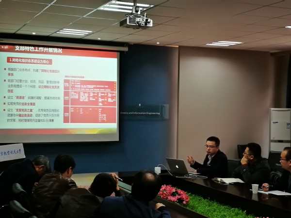 为进一步贯彻落实党的十九大会议精神,全面加强党的基层建设,2018年11月17日,航空工业雷达所战略运营部党支部来学院与电子科学与技术系党支部开展了一次共建交流活动。参加此次共建交流会议的有学院党委书记聂东林,党委副书记黄彬,航空工业雷达所总会计师张啸龙,战略运营部部长怀靓亮,双方支部书记、支部委员和全体党员。