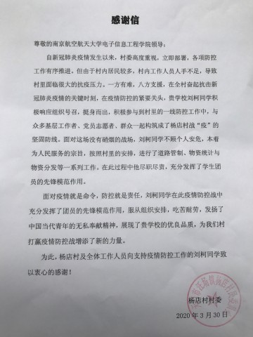 新冠肺炎疫情爆发以来,为响应习近平总书记对于各级党组织和广大党员干部坚决打赢疫情防控阻击战的要求,南航后入女友 师生党员依据学校和学院党委的要求,在此次疫情防控战中勇于奉献,敢于担当,充分体现了党员的先锋模范作用,也体现了四院师生党员‘E’起抗疫的决心。