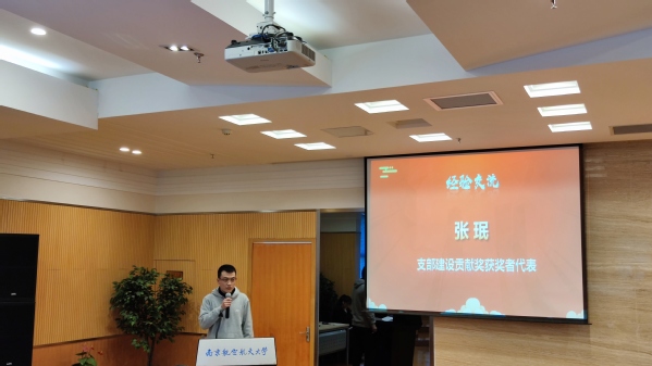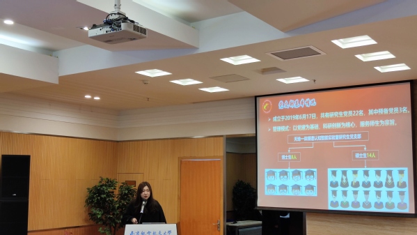 随后,研究生党支部书记陈佳馨博士汇报了2020年度党支部开展的各项工作,分享了实验室党支部“以党建为基础,科研创新为核心,服务师生为宗旨”的建设模式,介绍了实验室研究生在过去一年取得的各项荣誉,其中集体类奖项包括“先进基层党支部”,研究生“五好”导学团队,个人及团队类奖项包括7项国家级荣誉——硕士、博士研究生国家奖学金、“挑战杯”中国大学生创业计划竞赛金奖、3S杯大学生物联网技术与应用“三创”大赛一、二等奖、中国研究生数学建模竞赛全国二等奖和全国大学生FPGA创新设计竞赛二等奖,2项省部级荣誉——兆易创新杯研究生电子设计竞赛华东赛区二等奖及“互联网+”大学生创新创业大赛江苏省二等奖,7项校级荣誉——校优秀创新创业团队、华为奖学金、苏州工业园区奖学金、校三好研究生、校科研创新先进个人、校优秀研究生干部及校社会实践先进个人。