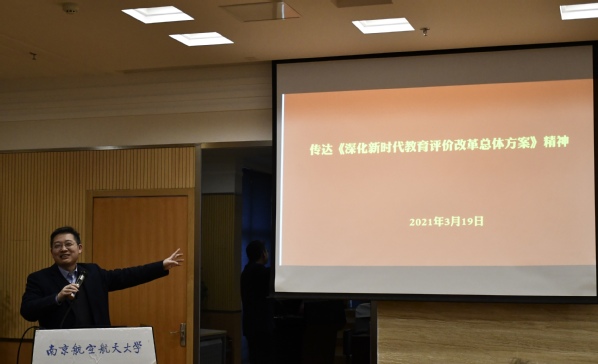 吴启晖结合39日我校《深化新时代教育评价改革》专题报告会上教育部综合改革司体制改革处处长李轶群对《深化新时代教育评价改革总体方案》的解读,带领全院教职工深入学习领会《总体方案》精神。