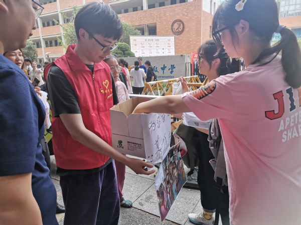 69日下午,正值高考最后一天,我院硕士2004第一党支部的全体党员前往南京九中、南航附属中学考点外开展共学党史、传递梦想主题党日活动,以向考生、考生家长发放支部自己制作的党史及南航宣传页的形式开展党史共学,宣讲党史及航空报国精神。同时支部成员还向考生们发起文具募捐活动,收集考生对留守儿童的祝福,为大山深处的孩子送去温暖。