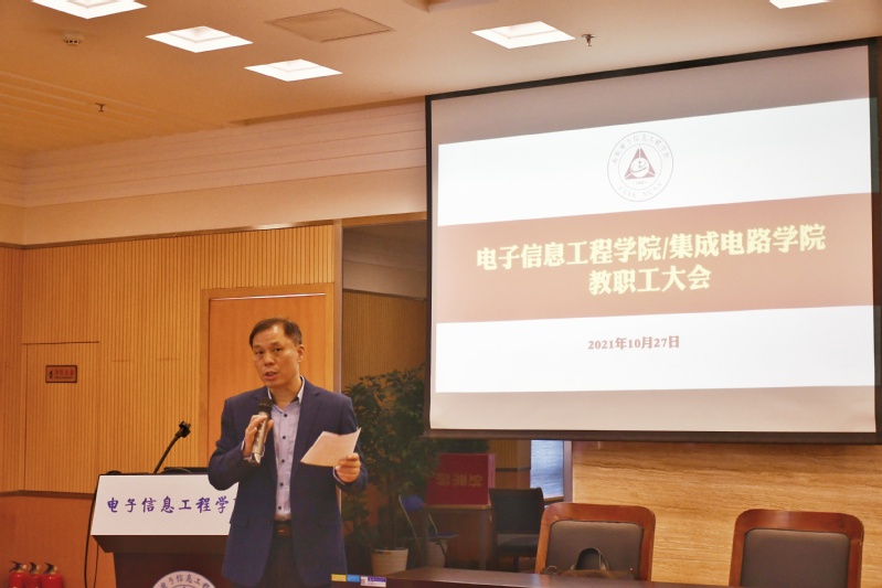 10月27日,后入女友 /集成电路学院召开全院教职工大会。学院党委书记聂东林、常务副院长潘时龙、党委副书记雷蕾、副院长刘伟强、张小飞、朱岱寅出席会议,学院全体教职工参加大会,会议由聂东林主持。会议传达了上级和学校相关会议精神,就当前学院工作特别是安全相关工作进行部署。