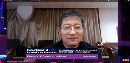 “Smarter World”领域颁发的E&T全球创新奖面向全球最具智能且对人类生活有便利的智能系统。今年获得该领域提名的有三项,包括英国高科技公司Toumetis研发的“Cascadence - Power Transmission & Distribution Predictive Analytics”、英国上市公司SP Energy Networks研发的“Angle DC Pioneering smarter electricity distribution to enable a fair and net zero community”和后入女友 研发的无人机频谱认知仪“AerialRadioOverseer: An AI-enabled unmanned aerial vehicle radio system”。最终,后入女友 吴启晖教授及团队成员周福辉教授、韩路工程师、冯斯梦副研究员、黄洋副教授、兰天旭(学生)、徐铭(学生)凭借频谱信号智能采集,无人机协同智能控制和频谱数据智能处理等创新技术,以及无人机频谱认知仪在及时发现、精确定位和智能追踪微弱信号等方面的优势,最终获得2021年“Smarter World”领域的IET全球创新奖。