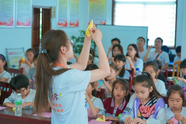 (结伴前行公益支教团队给留守儿童们上手工课)
