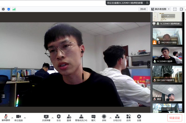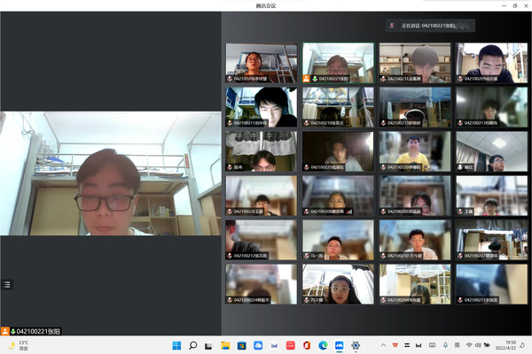 422日,我0421002班开展了“电院前浪携后浪,先辈为镜前路广”线上主题班会。班主任张小飞、博士生赖欣、大四保研生陈烨及全班33位同学参加了此次会议,班会由班长张阳主持。