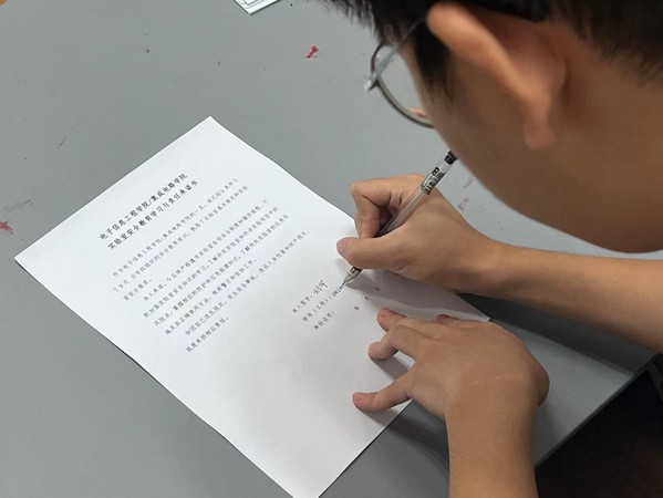 为了让同学们进一步提升实验室安全意识,学院组织全体同学签署了安全教育学习与责任承诺书,将安全责任落实到位,确保同学们重视安全问题。