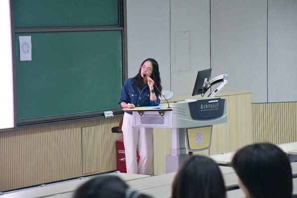 在防诈骗宣传环节,周栋栋首先通过大量鲜活的案例,从“交通安全”“消防安全”两个方面开场,并且通过提问的形式不断引导同学们思考安全的重要性,迅速活跃了现场气氛。他分享了近年来发生在校园里的部分电信诈骗案例,展现了庞大的电信诈骗数据,让同学们切实感受到电信诈骗的概率之高。周栋栋邀请与会同学进行互动,通过“杀猪盘”“裸聊”等案件,采用播放视频和还原案件的方式,逐步揭露电信诈骗分子设下的层层陷阱,给研究生新生们上了一堂印象深刻的防诈骗宣传课。