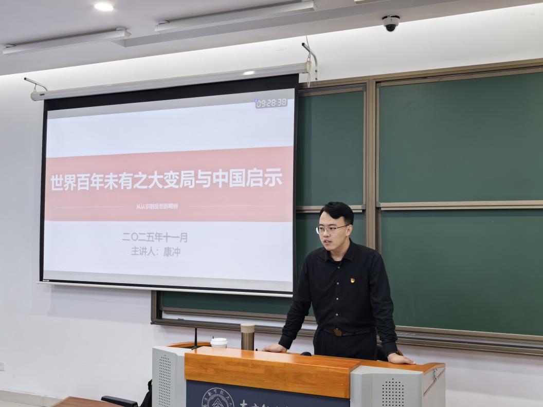 康冲以“世界百年未有之大变局与中国启示”为主题展开授课。他梳理近百年历史变迁,深入解析俄乌冲突的演进过程及全球影响,指出当今世界国际秩序加速调整、大国竞争日趋激烈的时代特征。他结合乌克兰危机的启示,强调要从政治、经济、外交、科技四个维度强调坚定不移走中国特色社会主义道路;加快构建新发展格局,坚持创新引领;践行真正多边主义,推动建设人类命运共同体;坚持自主创新,提升科技自立自强能力。