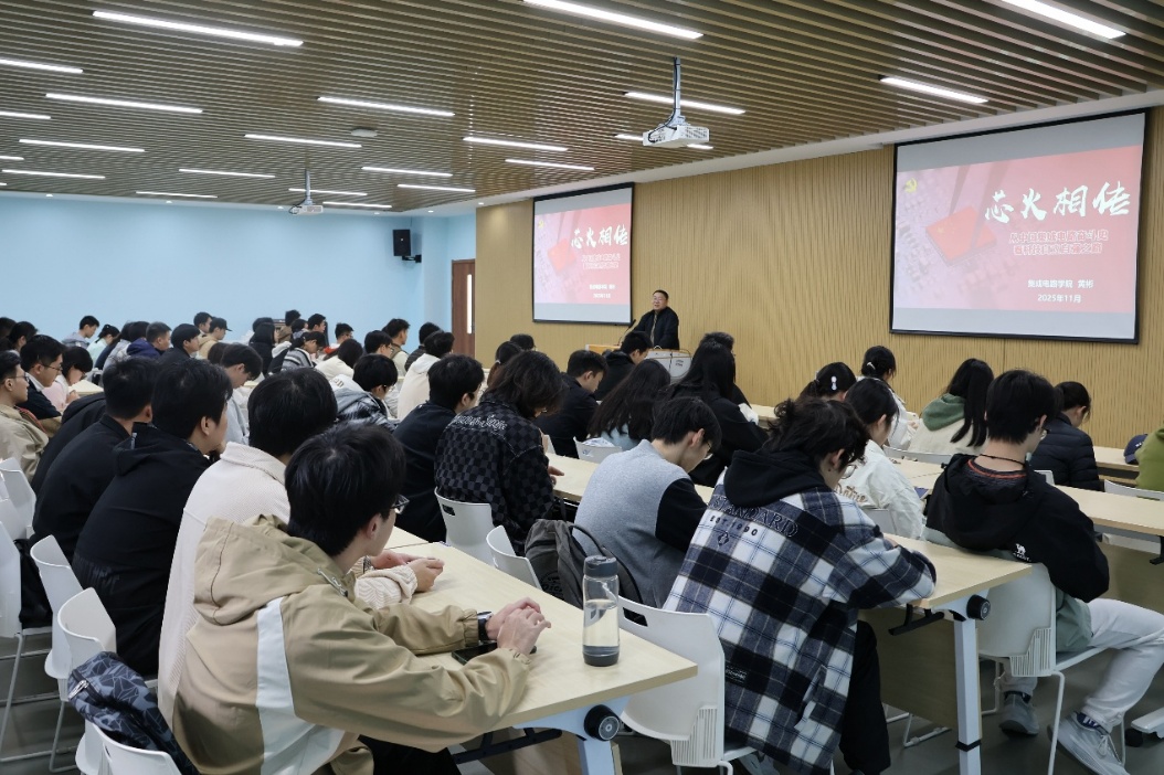 季海群在电子信息教育基地带来“学党史、书院史,做先锋、共发展”实境党课。他将党史精神传承与学院发展历程深度融合,紧扣“电子信息”“空天报国”学科特色,通过历史溯源、成就展示、使命解读,让学员们在沉浸式体验中明晰“学党史以明方向、书院史以强根基”的深刻内涵。课程旨在凝聚学员“做先锋勇担当、共发展启新程”的奋进力量,推动党建与学院发展同频共振,为培养电子信息领域报国英才筑牢思想根基。