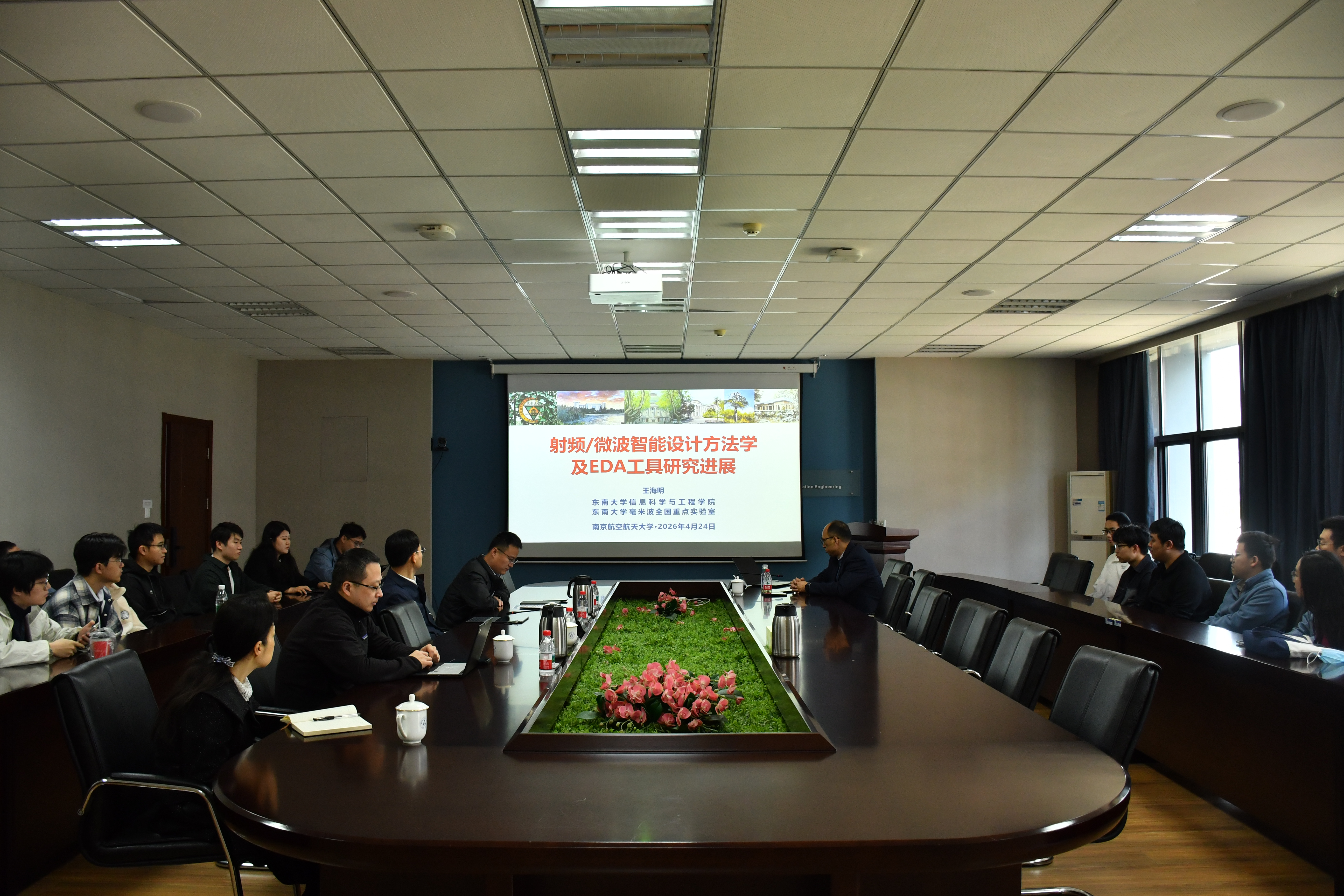 4月24日,东南大学首席教授王海明应邀莅临我院,在学院209会议室作了题为《射频/微波智能设计方法学及EDA工具研究进展》的学术讲座。学院党委书记季海群、副院长李茁、院长助理毕辉等30余名师生参加。讲座由毕辉主持。